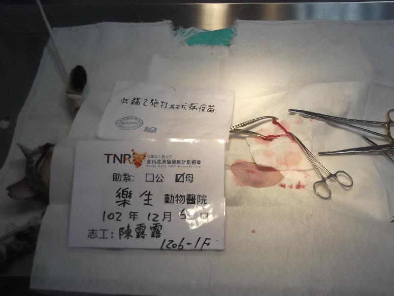 結紮醫院: 樂生動物醫院 結紮費用: 1200