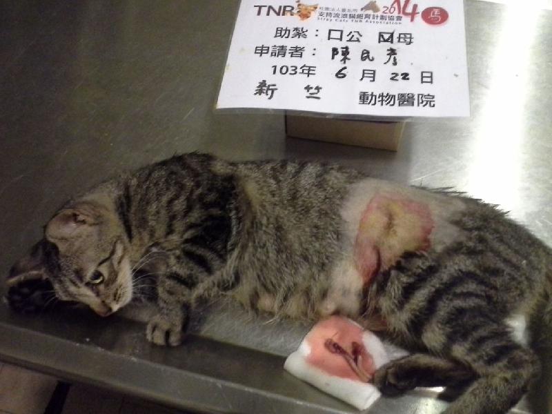 誘捕者暱稱: Makoto Chen 性別: 母 花色: 虎斑 誘捕地點: 新竹竹中口 結紮醫院: 新竺動物醫院 結紮費用: 1500 助紮者: 已付款:曾嬿蓉x2, shaoshao77x3 額外醫療費用申請: 特別說明與誘捕心情: 這是第一次參與協會TNR的活動,也是我為浪貓們踏出的第一步,這次是由NIKO與STAR兩位極具經驗的志工主導整個誘捕的行動,由於浪貓與通報餵養人熟悉,故捕捉順利,共捕獲2公4母,而剩下的小貓等長大後再行捕捉,希望可以協助餵養人解決貓口逐漸增多的窘境,並且讓毛小孩們可以好好過生活,同時解決餵養人經濟上的困難,至於TNR的費用還請大家多加協助,謝謝你們