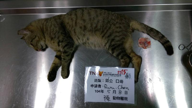 花色: 虎斑 誘捕地點: 桃園縣中壢市民族路2段