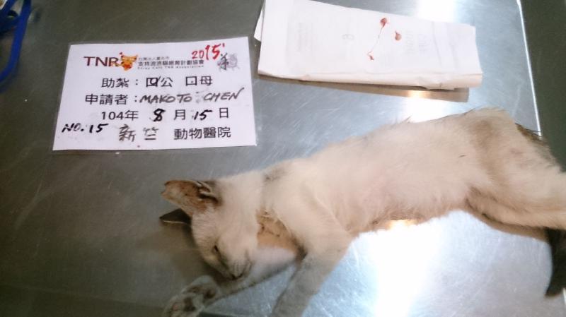 誘捕者暱稱: Makoto Chen 性別: 公 花色: 白底虎斑 誘捕地點: 新竹縣芎林鄉 結紮醫院: 新竺動物醫院 結紮費用: 800 助紮者: 已付款:Annx1, 花卉x2 額外醫療費用申請: 特別說明與誘捕心情: 這是向協會申請的新竹芎林專案,生活在養豬場周遭的浪貓,生活環境很差,數量又過多,愛媽負擔大導致一天只能吃一餐,很多貓咪都營養不良,最後只能吃餿水或抓老鼠,身體健康都堪慮,經向協會申請通過後,還得到協會專人專程南下協助捕捉,光一個早上就捕捉29隻,成效豐碩,讓貓咪從此可以擺脫發情交配生育的循環惡夢,控制數量,讓貓咪可以獲得更穩定的生活,也讓愛媽更有能力照顧他們,結紮費用龐大,還請大家多幫忙,感謝!