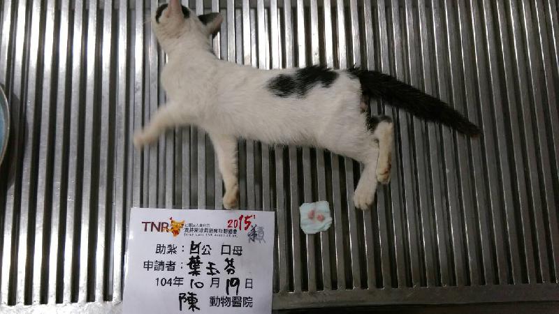 誘捕者暱稱: 葉玉芬 性別: 公 花色: 黑白 誘捕地點: 桃園市楊梅區楊新北路21巷2弄 結紮醫院: 陳獸醫院 結紮費用: 1000 助紮者: 已付款:Flower Zhangx2, Roycex2 額外醫療費用申請: 特別說明與誘捕心情: 桃園市楊梅區某巷弄內,原本人貓相安無事,但因為沒有結紮的貓咪愈生愈多,甚至生產在民宅的廚房內,導致附近部份的住戶開始反感。再加上去年冬天發生小貓天冷躲進汽車裡,被不知情的駕駛夾死在引擎室內的慘案,讓居民不勝其擾。於是,住戶張先生與我合作進行街貓的TNR計劃,希望藉由貓口的控制,讓人貓能和平共處,減少衝突。我相信在大家的努力之下,貓咪能健康的生活,居民也能學會珍視生命。