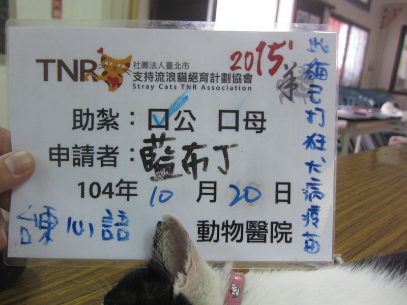 這隻貓咪是在台東市很著名的鯉魚山公園,有超多浪貓,在志工幫忙下誘捕到,慶幸的是有這TNR協會對於浪浪貓的照顧~