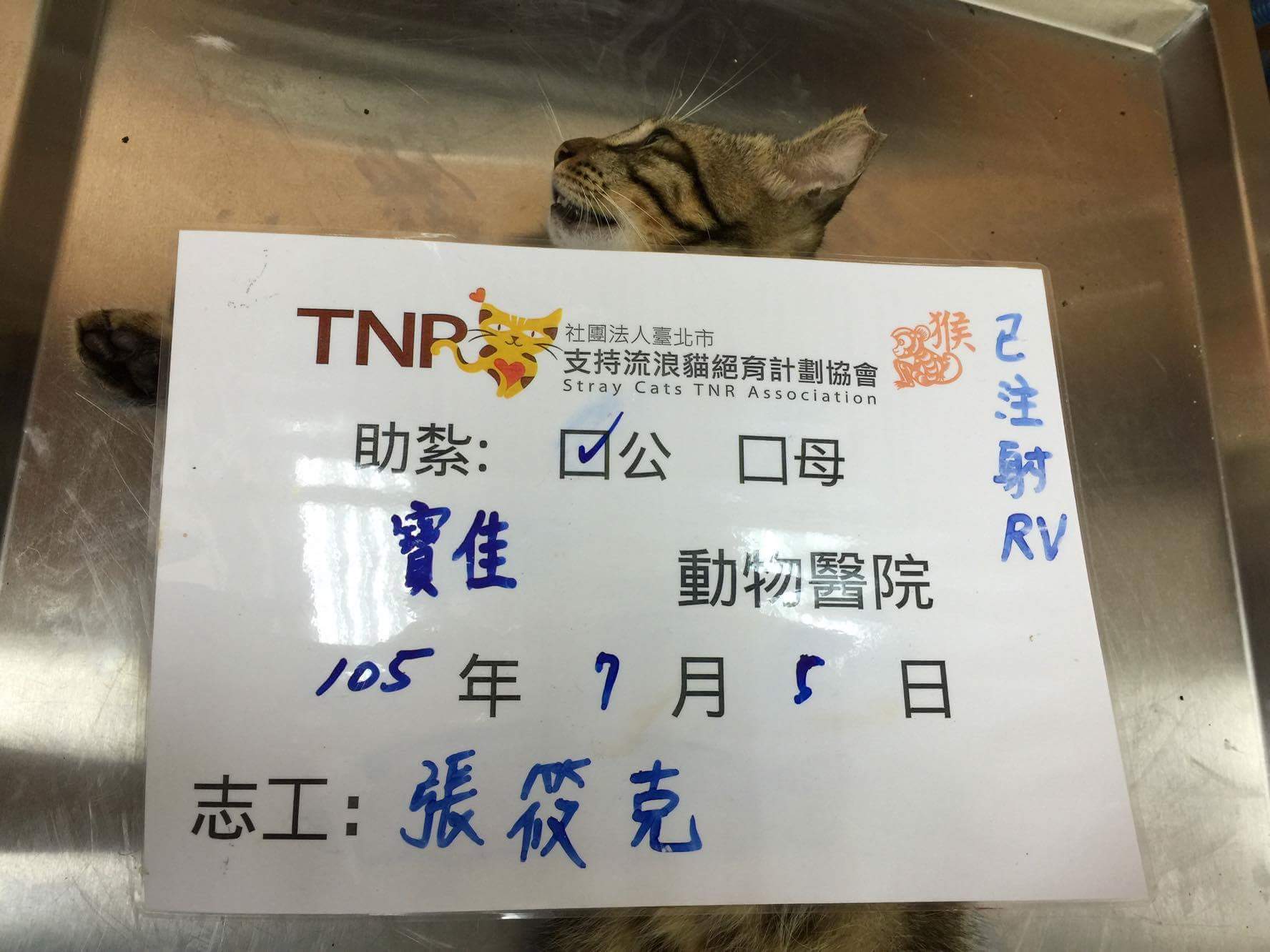 花色: 虎斑 誘捕地點: 中華路