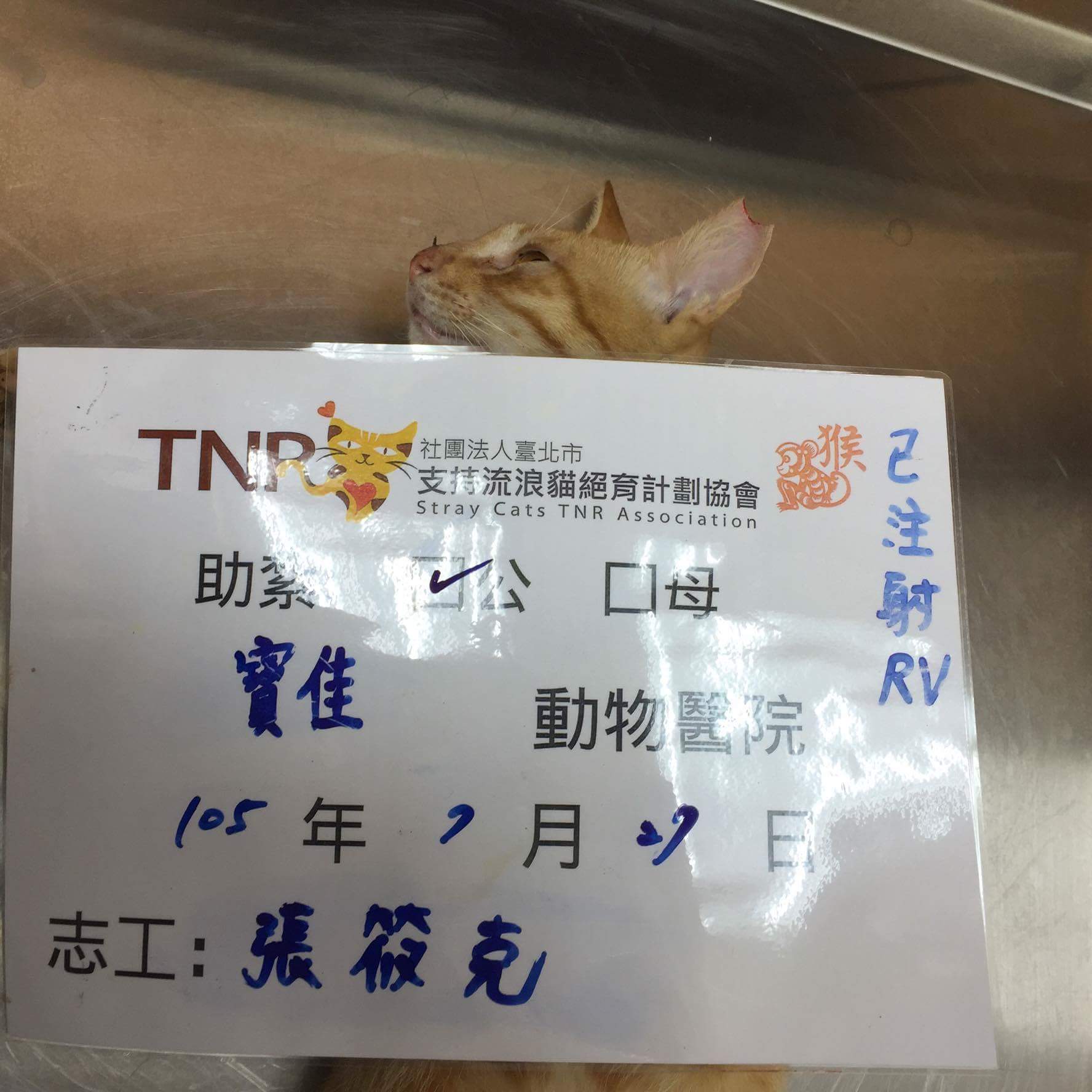 花色: 橘貓 誘捕地點: 綏遠路