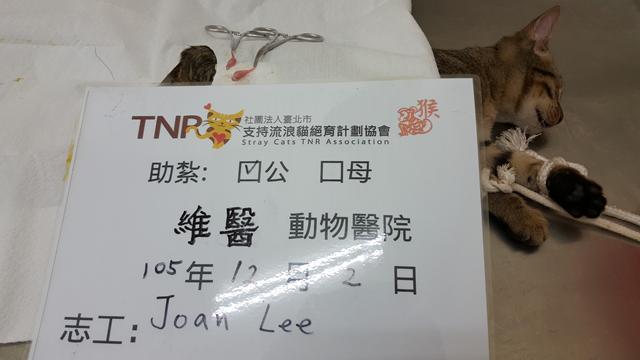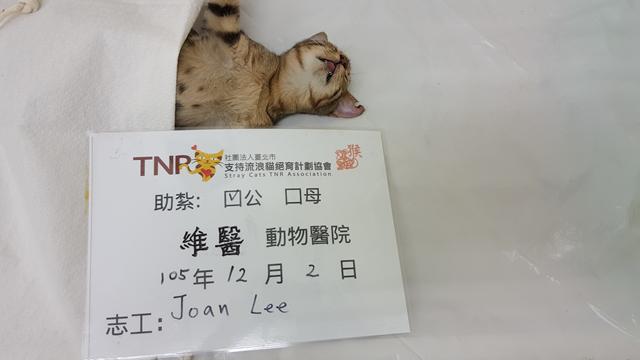 謝謝協會幫助浪貓結紮,感恩~~