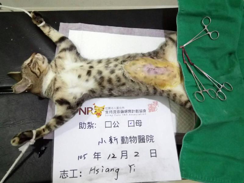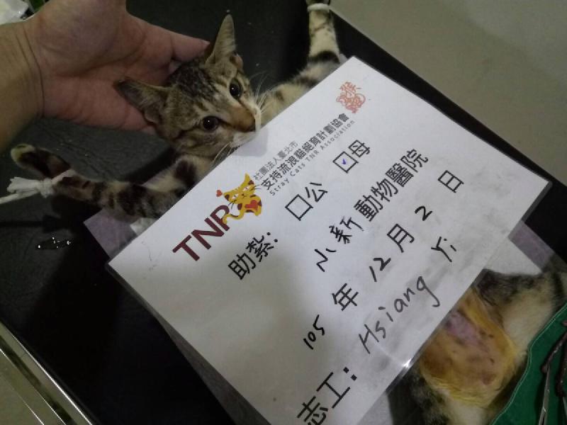 誘捕者暱稱: Esther 性別: 母 花色: 虎斑白 誘捕地點: 高雄市龍德路 結紮醫院: 小新動物醫院 結紮費用: 1100 助紮者: 已付款:Carey Hsux4 額外醫療費用申請: 特別說明與誘捕心情: 開始餵養浪貓到了解TNR的重要性,總是在外奔波的自己終於有機會為住家附近盡一份心力。巷子穿插的路間不常看到浪貓在外遊走,想來是回家時間錯過愛媽餵養的時間。但幾次下來發現總會有幾個孩子或許是錯過吃飯時間所以遇見我。漂亮的你們在冬天的夜晚看來為了一餐格外辛苦,希望聖誕來臨前給妳最好的禮物就是帶妳結紮,希望夜晚來臨時免於未來不斷的發情與生育,讓下一代也免用車水馬龍間的危險。讓我們一起支持TNR。