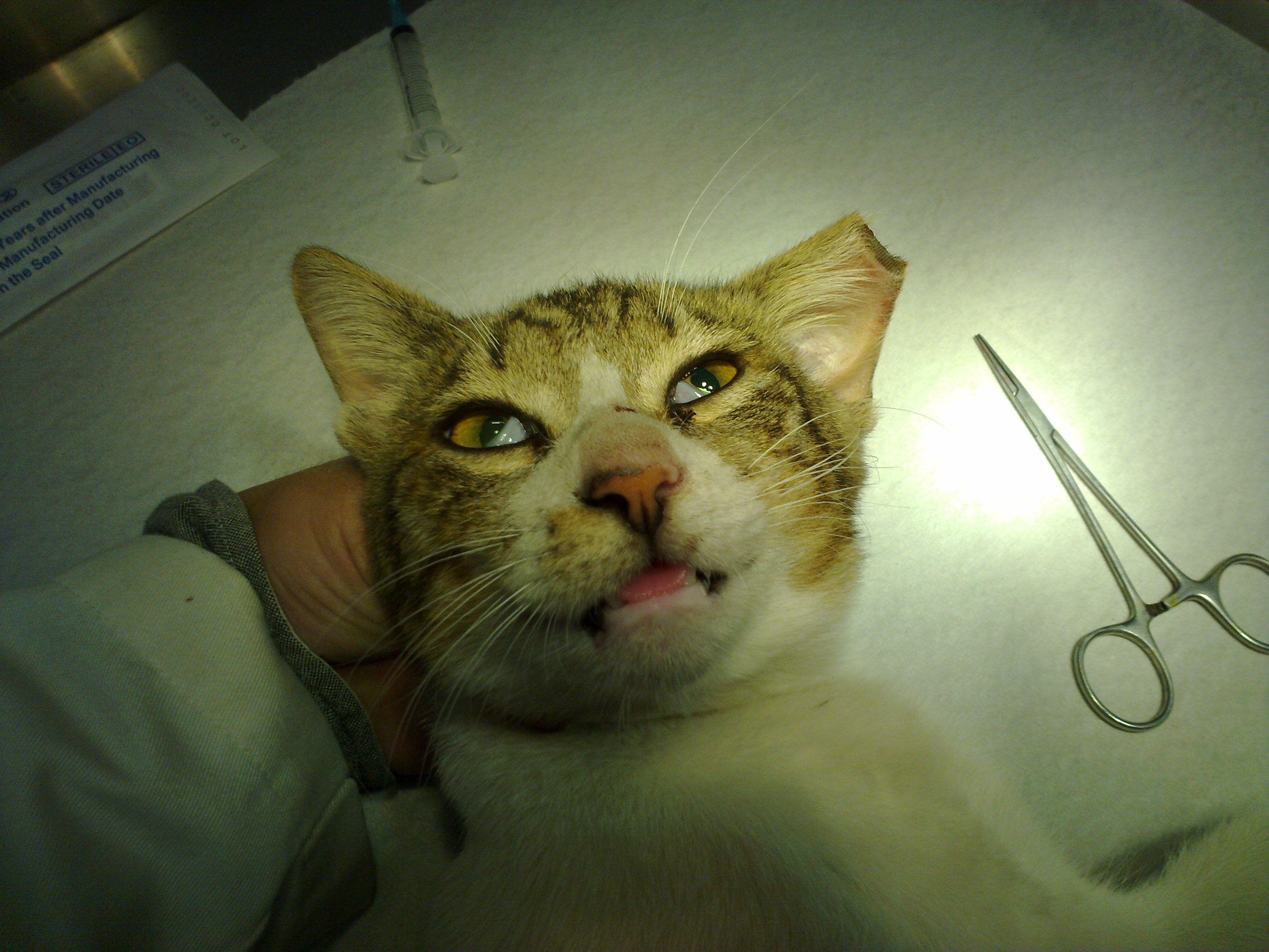 外來的公園貓之二,原本以為又抓到一隻母貓,沒想到竟是公的,超級孔武有力,想必有稱王的條件~~~趕快紮掉,避免又生出太多小貓