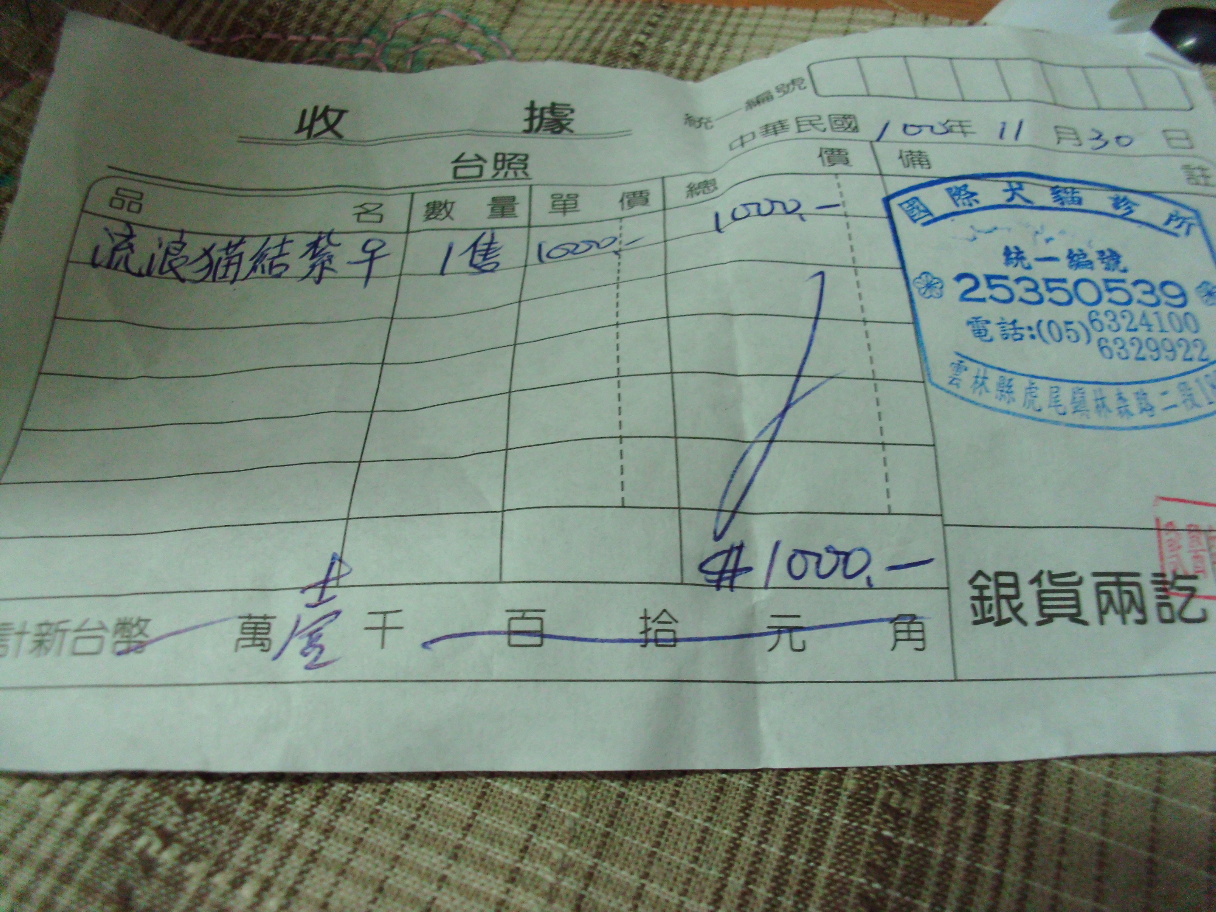 結紮醫院: 國際犬貓專科醫院 結紮費用: 1000