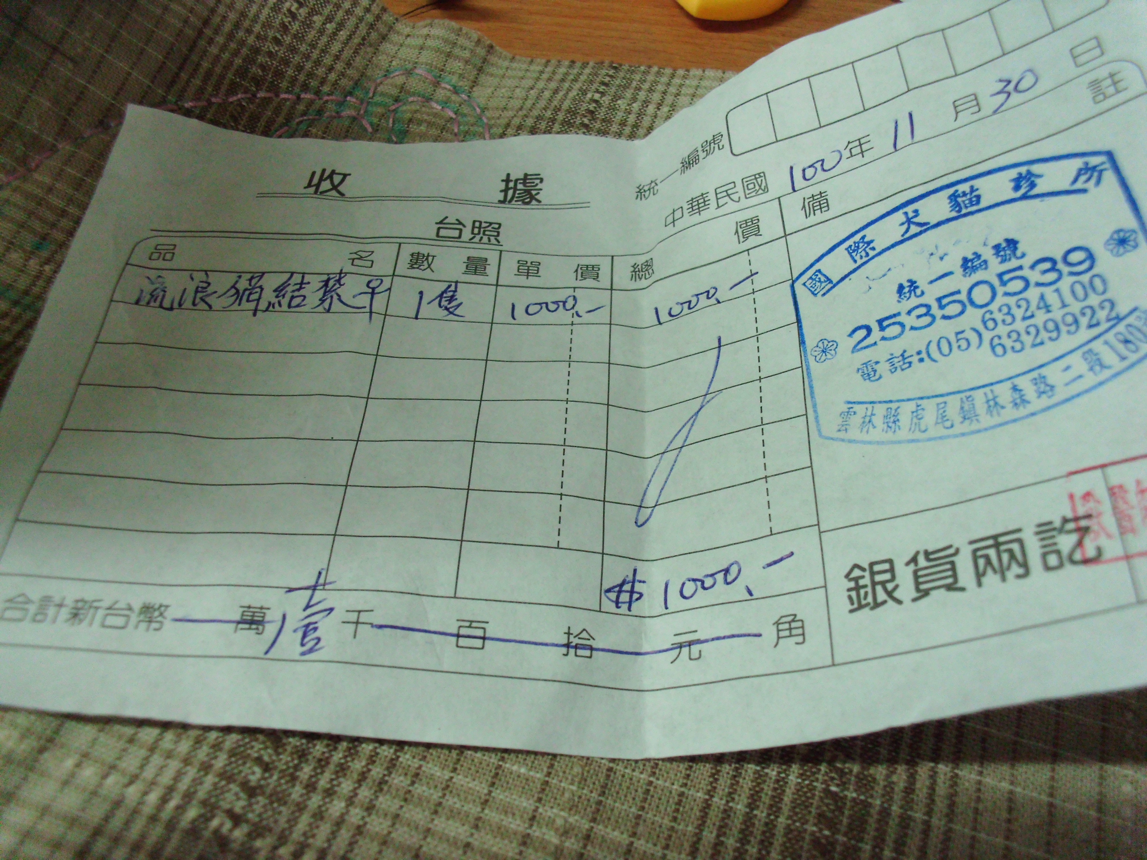 結紮醫院: 國際犬貓專科醫院 結紮費用: 1000