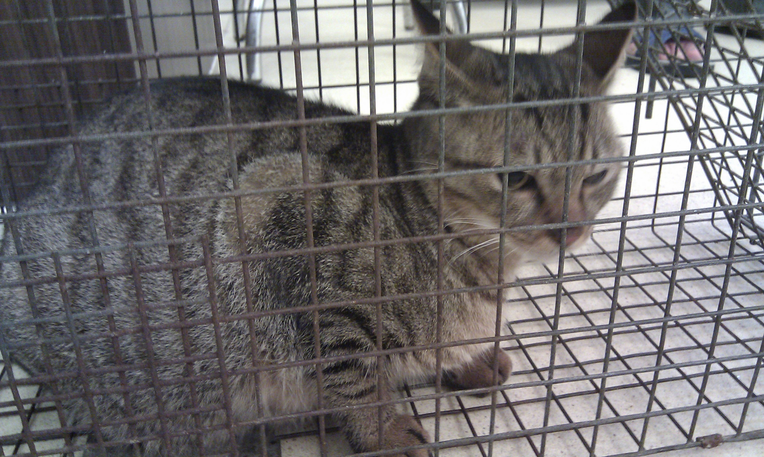 基隆下了好久的雨終於在禮拜一放晴了正是TNR的好時機...這隻小貓從小就跟著媽媽一起來討食,也到了該紮的時候了...於是生意清淡已久的誘捕籠又再度出動啦!