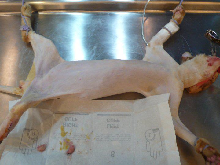 原先我以為牠是隻小公貓,來我的地盤撒尿。沒想到,牠是成貓,但是才3.1公斤重,而且一口爛牙,很可憐。目前還因骨折手術住院休養中。