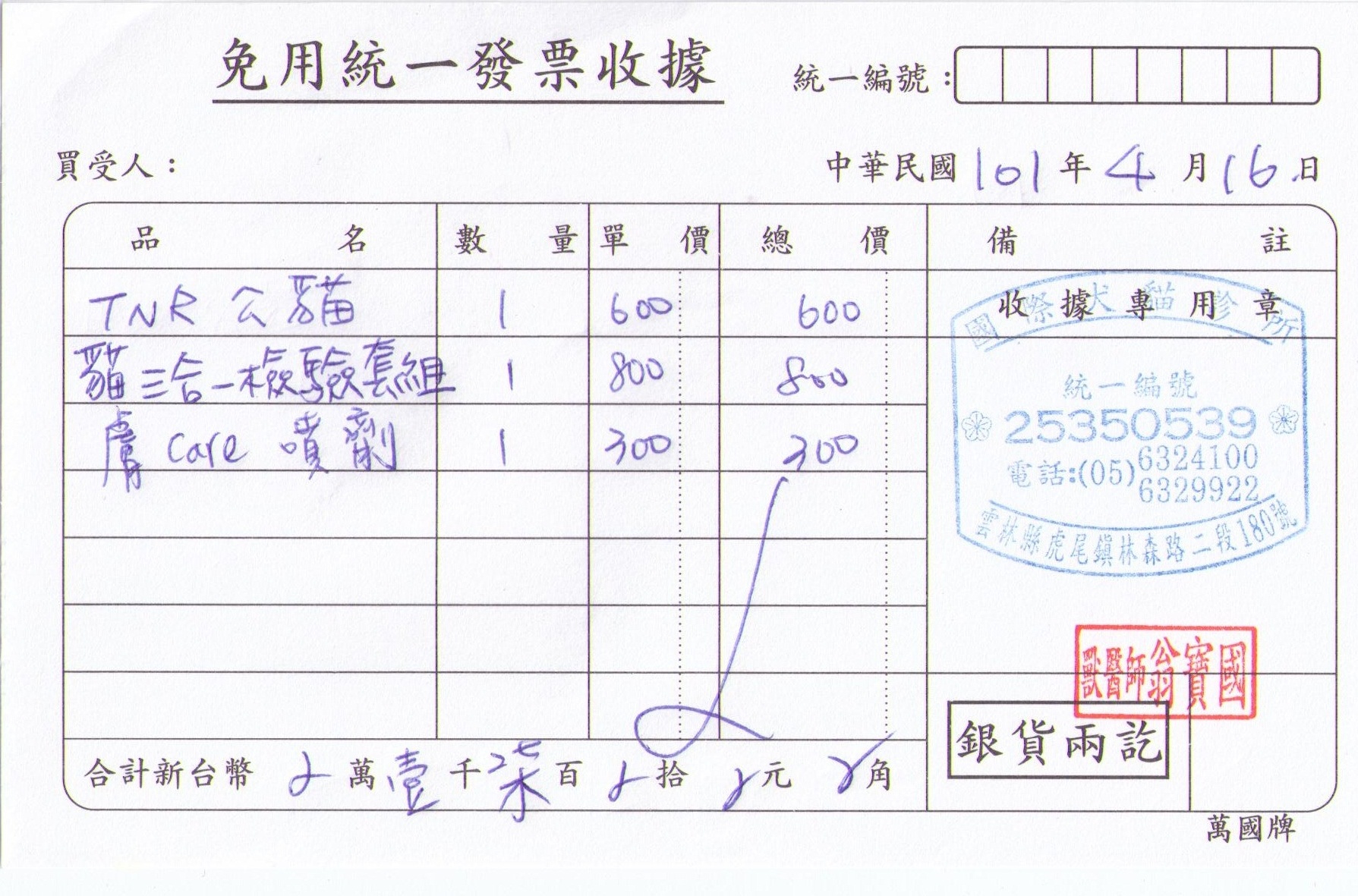 收據可抵稅請將地址mail至cashier@tnrtw.org0912940006763