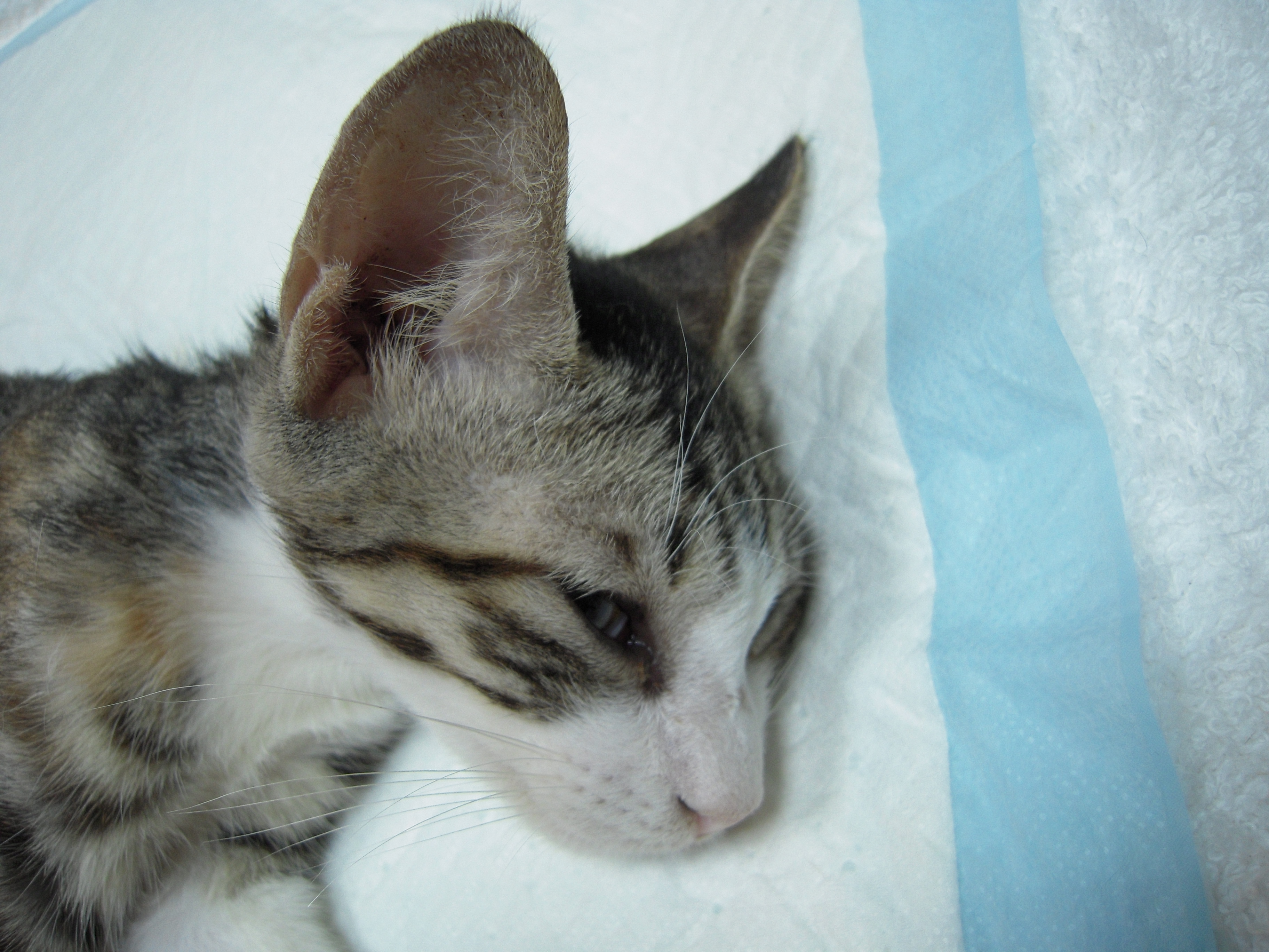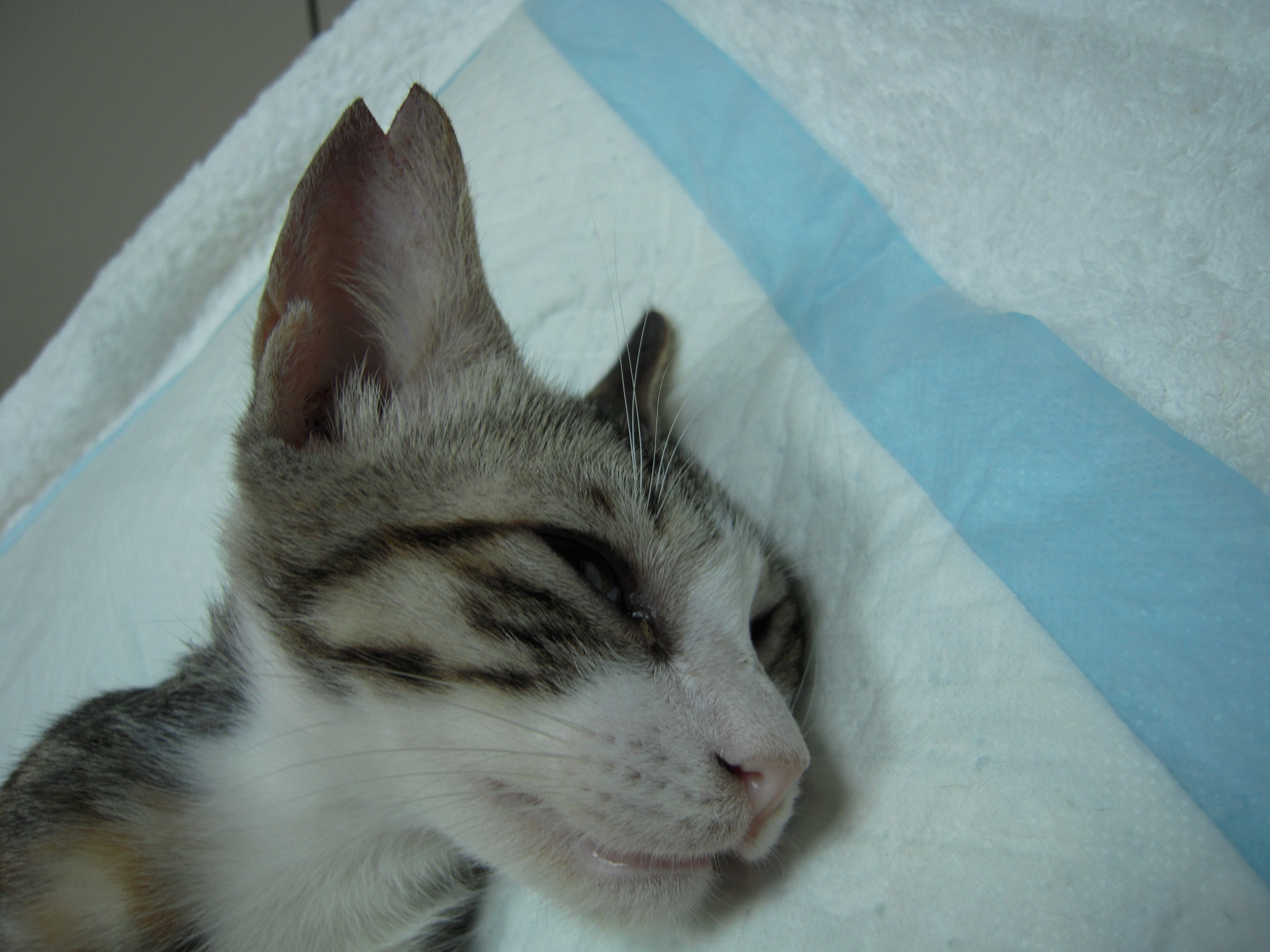 小貓五天前來的時候有很多鼻膿及化膿性眼分泌物,經口服及噴霧治療後已無分泌物,於25日進行節育手術
