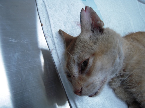 這隻橘子貓餵食已經將近兩個月