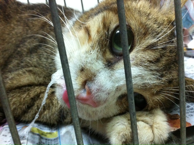 南勢角某蔡市場周邊的貓,地緣愛爸之前將可以抱到的貓咪幾隻帶去結紮,對剩下的貓咪一直生很無奈,這裡很多小貓鼻氣管炎,這隻公貓誘捕時有流鼻膿現象,但有食慾,已打針治療,感謝所有助紮人一同幫助弱勢貓。