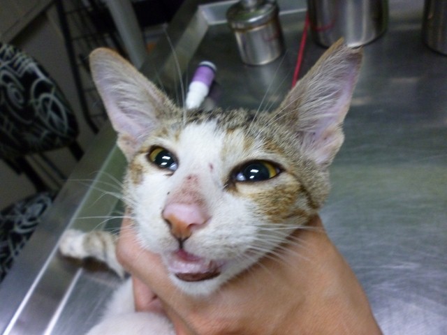 花色: 白底虎紋 誘捕地點: 河川路 香腸攤