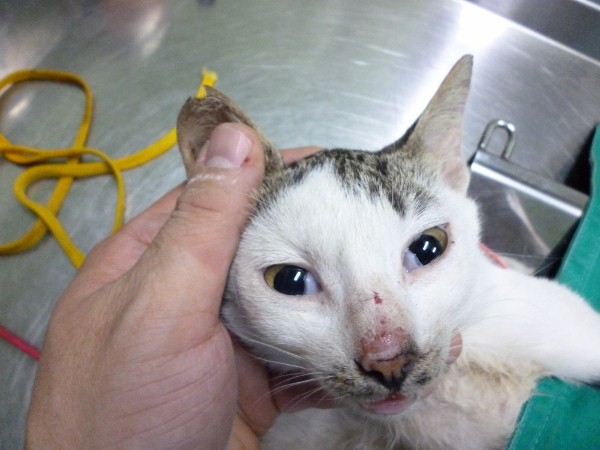 這是在山海宮下方誘捕到的母貓, 結紮的貓咪會在耳朵做剪耳記號, 以免日後被重覆誘捕手術. <829-1F>