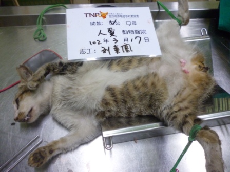 這是3/17在鼓山二路台電捕獲的白底虎斑公貓, 到醫院進行結紮手術. 0317-1