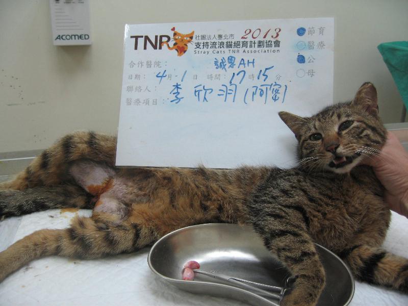 新北市三峽專案謝謝協會以及助紮的哥哥姊姊阿姨叔叔,我結紮後會乖乖不打架,其實我很厲害讓抓我的姊姊抓很多次才抓到……