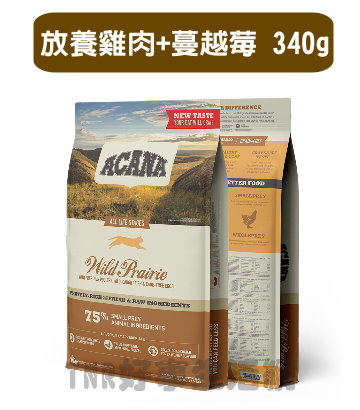 完全不含植物性蛋白質。ACANA WILD PRAIRIE含75%肉含量。