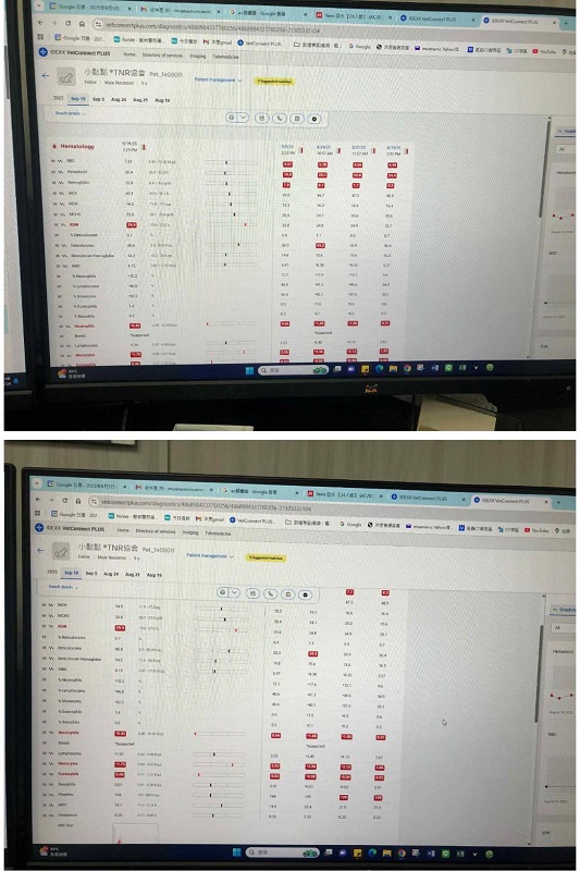 近期於2025年9月19回診觸診皮膚狀況還好,耳朵稍紅,要搭配血檢看紅血球的狀況。