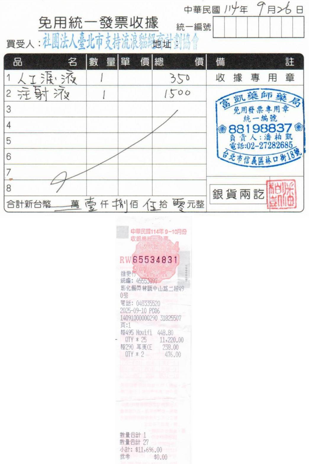 收據可抵稅請將地址mail至cashier@tnrtw.org0912940006763