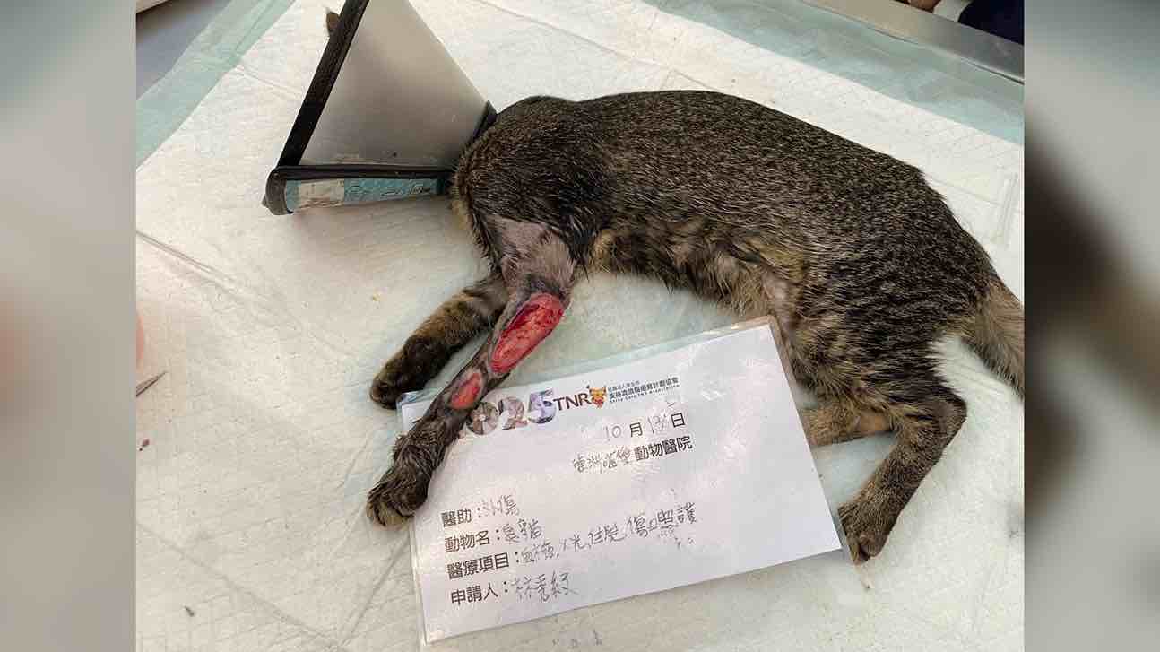 候補人員: 因考慮無人遞補、轉匯收費、信用卡刷卡匯率、寄送收據與郵資等成本,每筆醫助人數將斟酌彈性增加1-5位名額。 動物病情說明: 醫生說小臭貓的傷口疑似車禍造成,死裡逃生幸運的她還好也沒骨折,但傷口很深可見骨跟肌腱,手臂外側內側都有傷口化膿,希望大家能幫忙這隻五個月大的小朋友,謝謝!