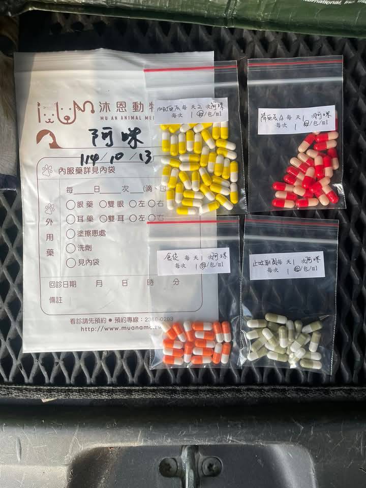 出院後的阿咪除了原來的腎指數高仍須打皮下維持腎臟功能,也要開始吃心臟用藥,還有因紅血球指數不穩定需要打造血針劑,並持續回診檢查以調整輸液及用藥劑量,在阿咪吃不好時照護員也少量灌食以維持阿咪的體力,2025年5月27日,體重有維持,不須血檢,原本是要做胜肽治療,但上靜脈時發現血管塌陷無法上針,這是因為阿咪原先就循環不好,加上住院開始打靜脈注射的影響,所以讓血管逐漸塌陷。