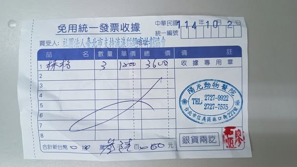 所在縣市/合作醫院: 台北市/沐恩動物醫院