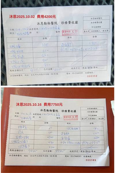 2025年10月16日於沐恩看診,因病毒感染長期無法抑制,所以耳朵及嘴巴總是會持續紅腫,需加強清潔保持乾淨。紅血球與球蛋白皆超出標準範圍,同時也須注意精神食慾狀況,若變差則需要盡速與醫院連繫回診。