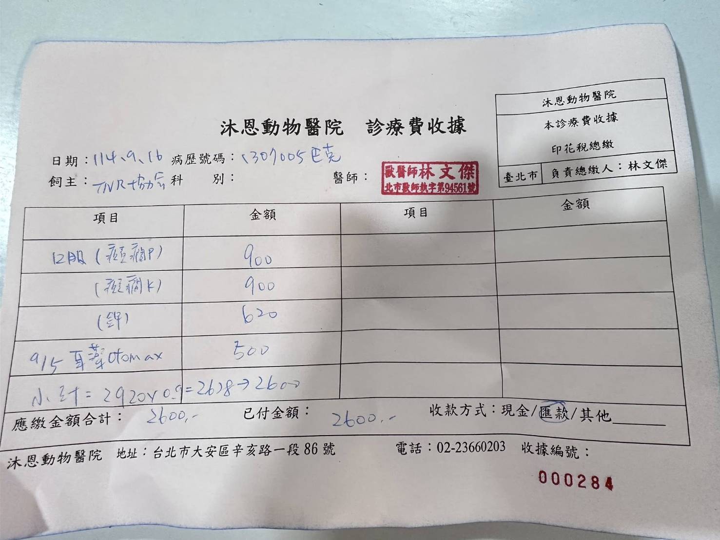 主題: 終身癲癇治療的巴克 申請者姓名: TNR協會 花色: 申請日期: 2025-10-23 12:46:38 申請者部落格: https://www.facebook.com/SupportTNR/ 申請者臉書網址: https://www.facebook.com/SupportTNR/ 所在縣市/合作醫院: 台北市/沐恩動物醫院 治療費用: 11400元 需求名額: 38人 平均每單位: 300元 已報名名額: 0 尚需求名額: 38 報名人員: 候補人員: 因考慮無人遞補、轉匯收費、信用卡刷卡匯率、寄送收據與郵資等成本,每筆醫助人數將斟酌彈性增加1-5位名額。 動物病情說明: <癲癇與黴菌追蹤的巴克>