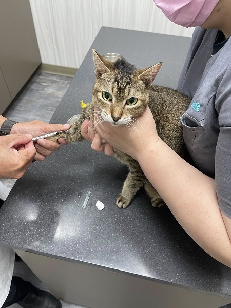 2025年3月25日的回診,腎指數一項上升、一項下降,而體重減輕較多,因平時沒有出現特別異常,用藥就先維持並留意體重是否持續下降,原本可三個月再回診,但看診後隔天晚上旺寶突然連續嘔吐還拉肚子,在詢問過醫師後當晚先幫旺寶打皮下輸液,並於2025年3月27日回診檢查,回診前的早上旺寶食慾有恢復也沒有再吐拉,胰臟炎檢查是陰性、腎指數仍高但沒有異常的升高、白血球上升但仍在正常值內、沒有發燒,依據血檢及臨床檢查,先以腸胃炎處理,再打幾天皮下輸液及制酸止吐針劑。