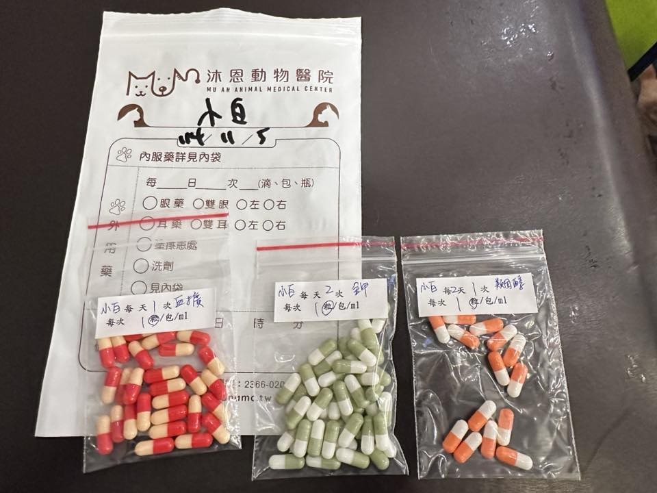 小白是很漂亮的純白貓咪美女,目前食慾精神都很穩定,因關節退化問題,走路看起來是踩著小碎步,相當可愛,照護員每天持續讓她吃關節保養品控制關節退化,也每週測量體重紀錄,只是畢竟小白年紀已大,腎臟功能的衰退是不可逆,只希望經由用藥能延緩病情及維持生活品質,本筆醫助是2025年11月5日間於沐恩醫院的費用,包含回診血檢及用藥等等。
