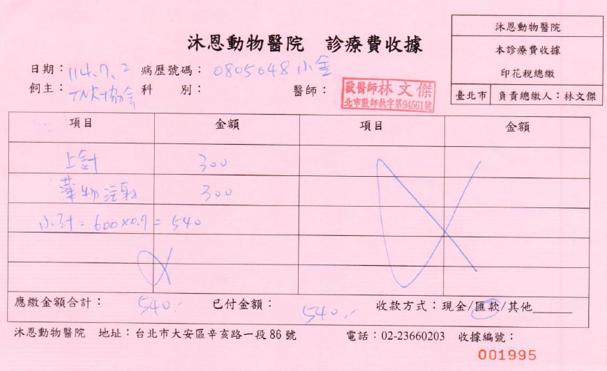小金的口炎治療還須持續很長一段時間,本筆醫助是自2025年6月4日至2025年7月4日間於沐恩醫院用藥及2025年10月21日於沐恩醫院看診的費用,包含血檢及用藥。