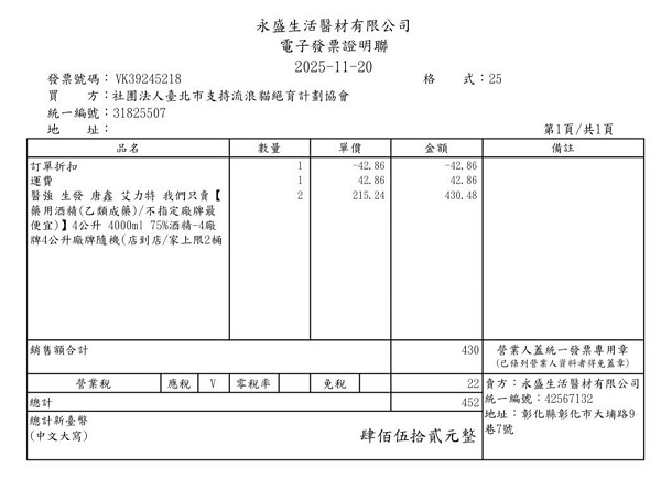 收據可抵稅請將地址mail至cashier@tnrtw.org0912940006763