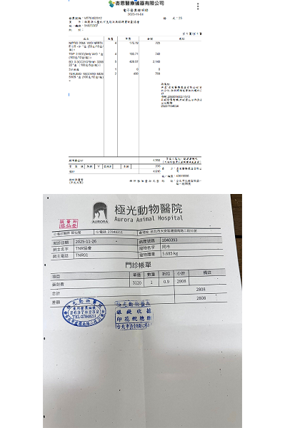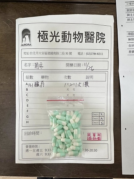 罔市雖然曾經經歷心臟的大手術,但幸好是有協會給予最好最用心的醫療與照護,讓罔市長得圓潤可愛,她的個性也很親人撒嬌,很喜歡翻肚子腳開開的討摸摸,罔市的心臟用藥是終身需求,本筆醫助是2025年11月28日至極光動物醫院取心臟藥的費用。