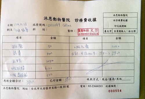 所在縣市/合作醫院: 台北市/沐恩動物醫院