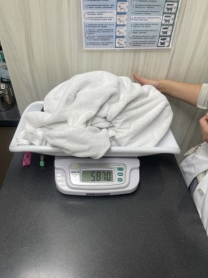 貓咪病情複雜,醫生們懷疑是腫瘤問題,於是7月初寫信向協會尋求幫助,目前已於合作醫院長青進行各項檢測,並於楊動物醫院住院照護中。經檢測,無腫瘤活躍細胞,細菌培養亦無細菌感染,已再進一步另做細菌切片染色檢測。第一階段報告結果,醫師認為,下巴跟頸部後側莫名腫大的原因,跟貓愛滋發病有關。目前投以抗生素、造血針治療中。