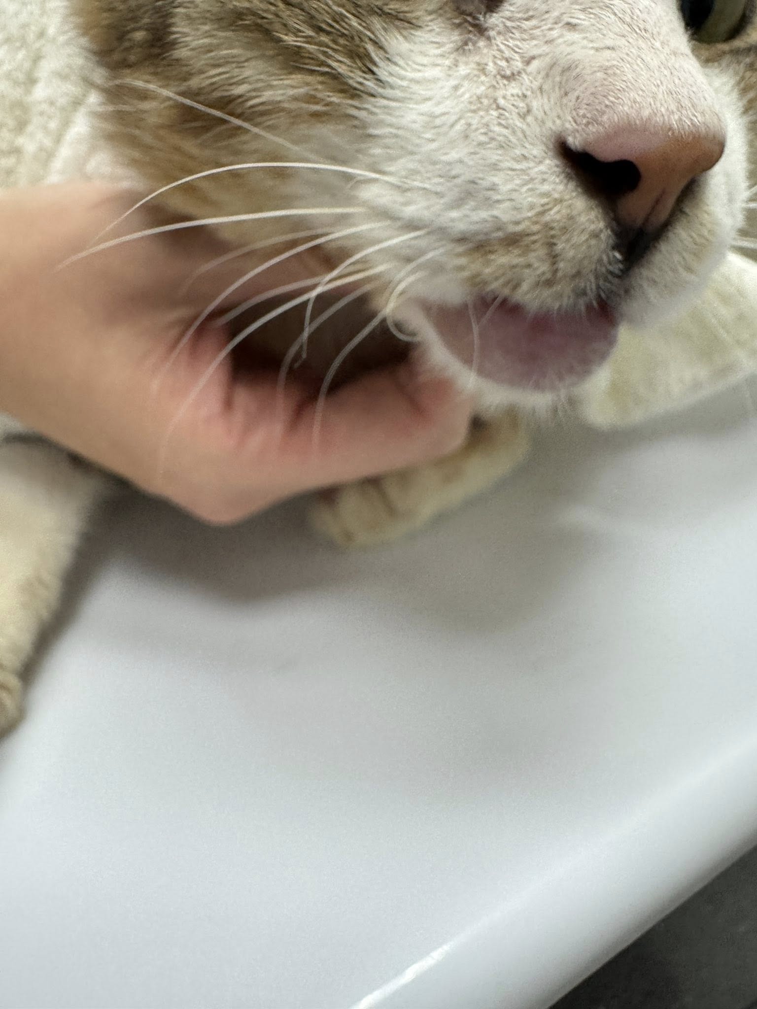 2025年10月16日於沐恩看診,因病毒感染長期無法抑制,所以耳朵及嘴巴總是會持續紅腫,需加強清潔保持乾淨。紅血球與球蛋白皆超出標準範圍,同時也須注意精神食慾狀況,若變差則需要盡速與醫院連繫回診。
