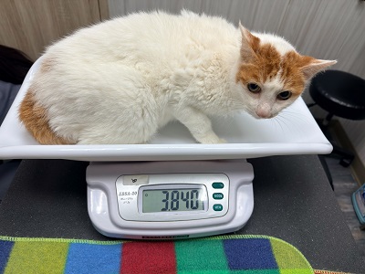 2025年10月苗栗貓屋的貓全數遷移回台北安養之家,因大白有淚眼而於2025年12月8日至沐恩醫院看診,察看腹部超音波時照到左腎有腫瘤、且精神狀況不佳,當下已住院觀察。後於12月10日出院需持續觀察排尿情況及尿色,若有異常或精神食慾變察須立即回報醫院。