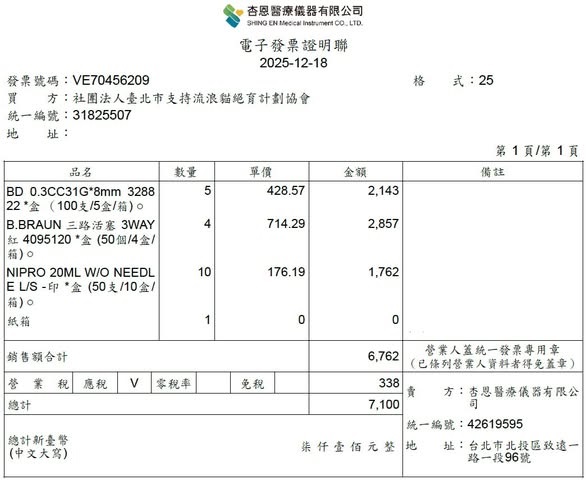 114/12/18杏恩醫藥用品 $7100