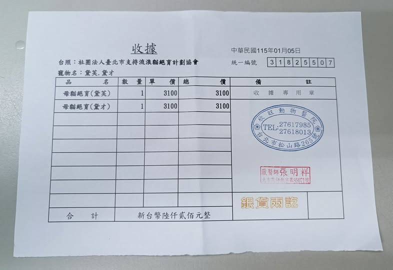 戶名:社團法人臺北市支持流浪貓絕育計劃協會