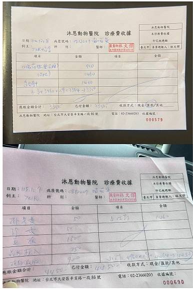 兩隻可愛的小玳瑁。黃毛長到頭頂的叫做黛芙(帶來福氣);另一隻黃毛只遮眼附近的叫黛才(帶才與帶財)。約一個多月,已經會自己吃。因已適逢可結紮年齡,於2026年1月至欣旺動物醫院進行結紮手術,現已順利出院。本筆醫助是黛芙黛才自2026年1月5日於欣旺醫院的絕育費用。