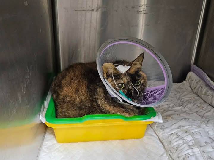 2026年11月苗栗貓屋全數貓咪遷移回台北安養之家,玳瑁奶媽也是其中之一,12月時照護員發現奶媽連續多日精神食欲不佳未自主進食,因此安排2026年12月29日於沐恩醫院進行看診,觸診及x光並無腹部疼痛犯應也無胸水及肺炎腫瘤等狀況,但發現血小板偏低可能跟肝臟發炎,以及凝血功能差有關,且肝指數相當高。超音波初步檢查結果胰臟指數也正常所以可排除胰臟炎。但肝臟形狀較大不排除有脂肪肝,醫師表示需住院觀察持續追蹤肝臟狀況,因此12月29日當天立即安排住院,因奶媽持續未自主進食因此安裝鼻胃管,住院期間狀況為:自發性膽管肝炎,免疫系統問題以類固醇治療,還是持續鼻胃管餵食,除非能自行進食但還需要一段時間,精神食欲已有比較好。到了2026年1月13日醫師表示這兩天可觀察是否能出院或是能自主進食吃得比較好再出院。且肝指數跟黃疸指數已有下降。經兩天觀察後,奶媽已恢復進食於是安排1月14日出院,目前已回到安養之家照護中。