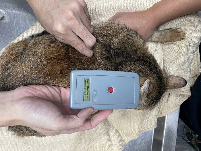 在2022年初,狸貓突然消失了三個月,待再次出現,行為變得警戒且瘦了一大圈,接著食慾不如以往還流口水,愛爸在2022年7月誘捕到後,經協會安排送至沐恩醫院檢查,因狸貓很生緊張一直踢咬,給輕微鎮定才能仔細檢查,血檢結果,愛滋白血二合一陰性,感染相關數值偏高,X光及超音波檢查影像看來腸道有些異常,有中等程度脫水及嚴重口炎及牙周問題,牙齒狀況差且有多處齒根膿瘍,當天辦理住院給靜脈注射藥物矯正脫水、有貧血要打造血針,治療至內科較為穩定,便於2022年7月15日進行全口拔牙,手術完成後繼續住院,直到2022年7月19日已較為穩定便辦理出院,因仍需持續治療口炎及追蹤血檢,所以就住進協會的安養之家。