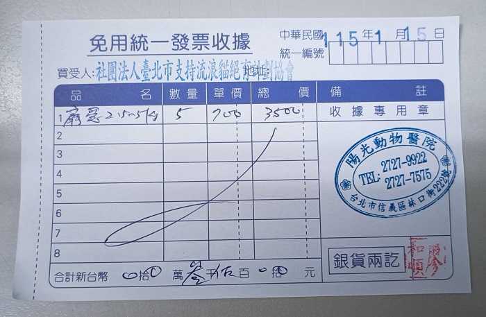 戶名:社團法人臺北市支持流浪貓絕育計劃協會
