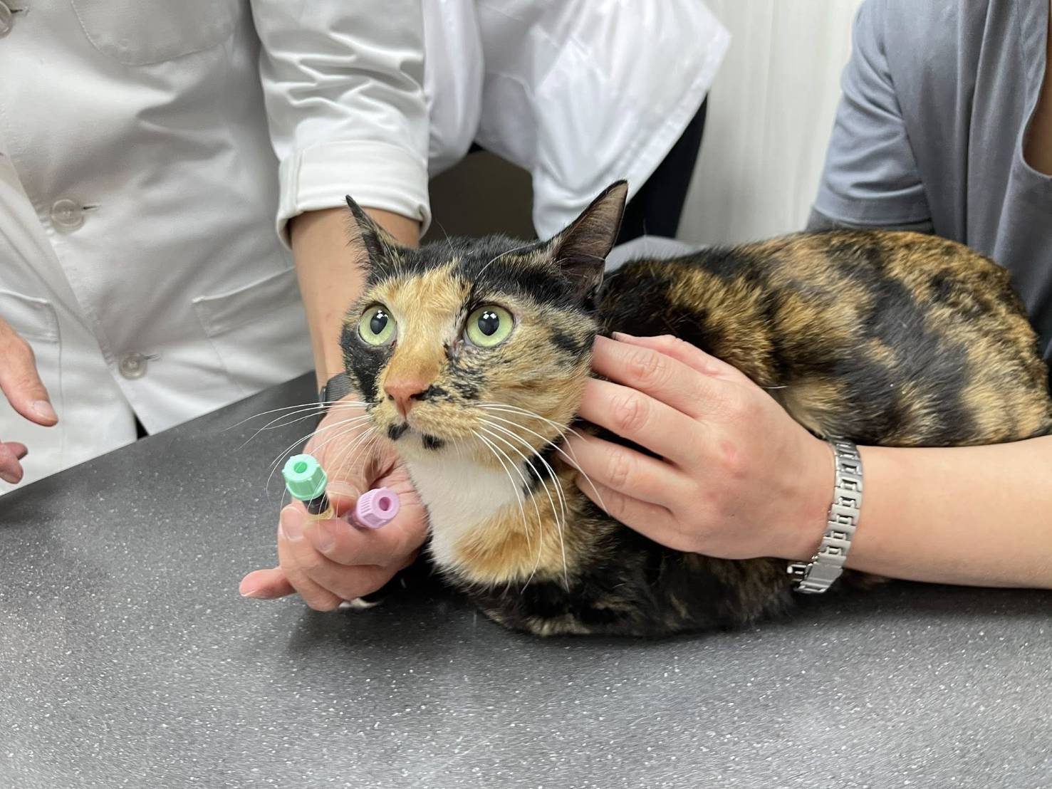 貓瘟病毒會嚴重傷害腸道黏膜,蜜柑的消化吸收功能都比常貓來得弱,體重增加緩慢、經常出現拉肚子情況,持續回診、吃抗生素及腸道保健品,在2022年4月間發情接受絕育手術,而腹瀉情況在持續用藥數月後有明顯改善,只是蜜柑的健康狀況極不穩定,2022年9月因發燒、食慾精神變差至沐恩醫院檢查結果,血檢紅血球下降、肝指數及白血球指數升高、X光的腎臟影像異常、超音波發現腹水、血檢A/G比指數很低,抽血後送實驗室的冠狀病毒PCR結果是陽性,加上血檢及臨床症狀,醫師認為腹膜炎的機率相當高,除了住院打靜脈,協會也立刻購買昂貴的腹膜炎保養品送往醫院給蜜柑服用,雖住院治療用藥後有好轉、可出院,但自此開始至2023年12月間,健康狀況還是反覆不定、幾度因為發燒、淋巴指數高、精神食慾差幾度住院治療,也持續吃昂貴的腹膜炎保健品。經過一年多的持續回診治療及用藥、吃完腹膜炎保健品療程,直到2024年1月間開始的定期回診,蜜柑的各項檢查結果才開始逐漸穩定,除了可逐漸減少用藥,只需吃肝臟保健品及食慾促進劑,也可延長回診時間。