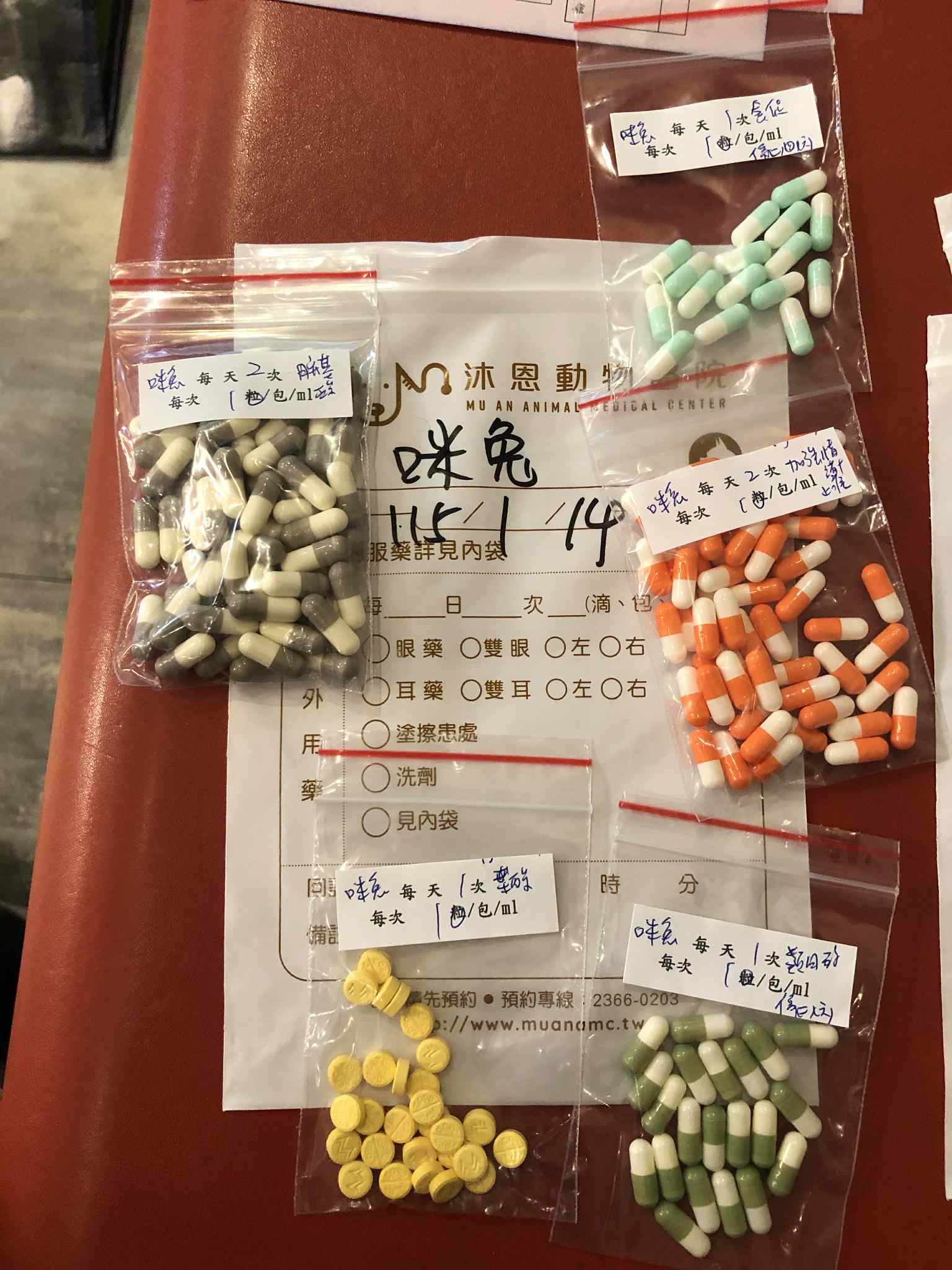 目前咪兔還好食慾精神都還不錯,每週測量體重都維持。咪兔剛來到安養之家時,看到人就躲起來,幸好協會給了他最好的醫療與照護,他與同樣是腹膜炎痊癒的明珠是感情很好的室友,倆隻總是黏在一起、互相理毛,非常溫馨可愛 。本筆醫助是咪兔2026年1月15日於沐恩醫院用藥的費用。