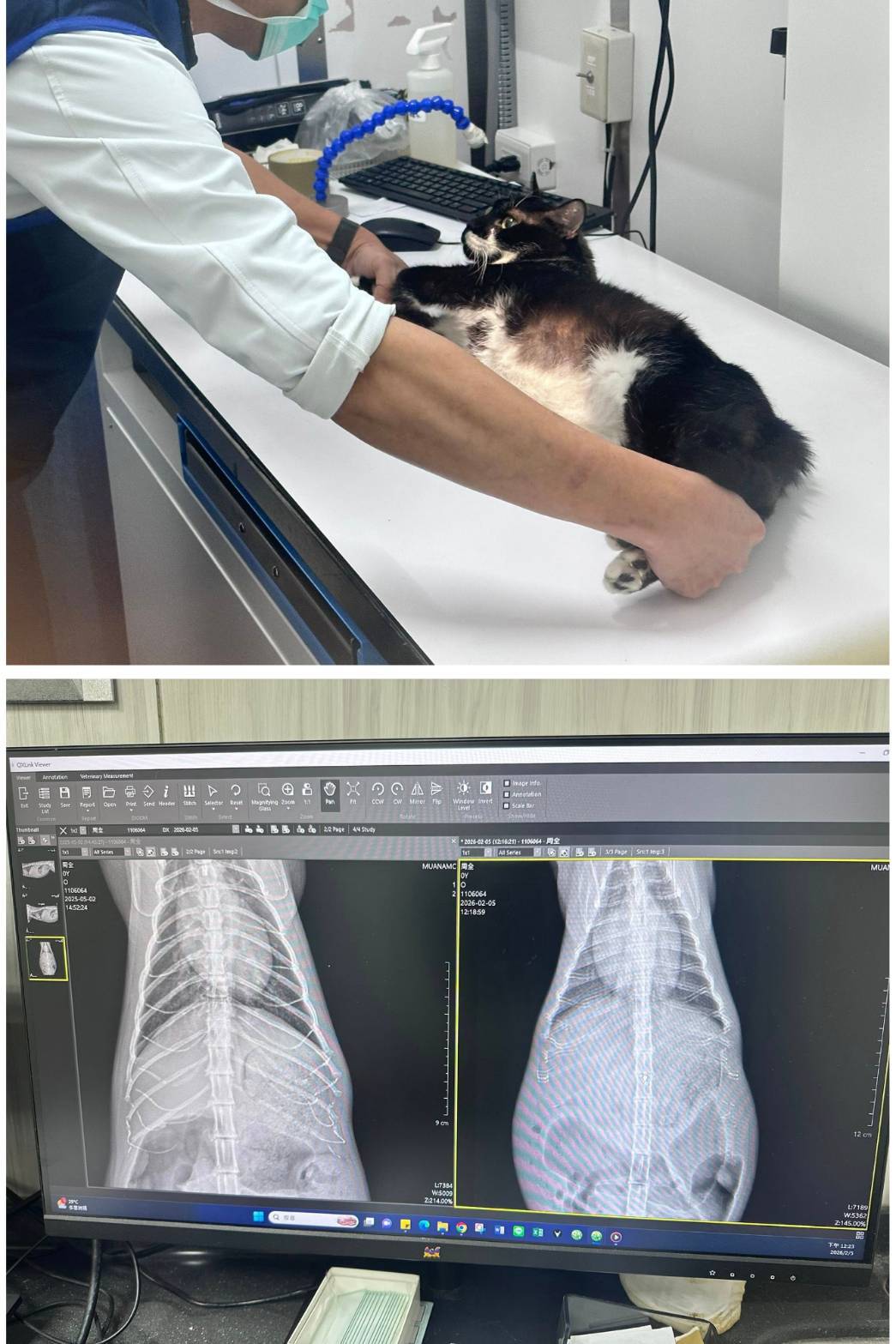 2025年6月13日周全早上反常沒有將食物吃完、嘔吐、精神不好,回報沐恩後臨時回診。血檢胰臟炎是陰性,但超音波影像胰臟炎是偏白,醫師懷疑還是有胰臟炎,少量腹水也是因身體發炎引起,也擔心即將有全身性的細菌感染,今天用藥會做調整。