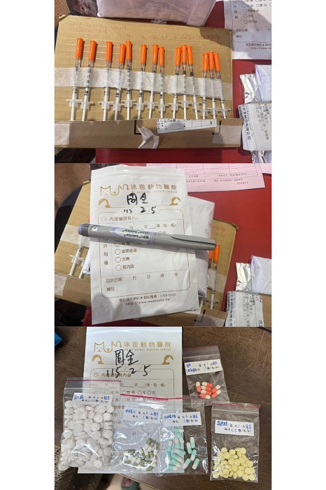 在2024年9月4日周全突然食慾精神變差、發燒,先至極光醫院看診,測量體溫有發燒、血檢及X光檢查,胰臟炎陽性、肝指數、黃疸、血糖都升高、腸道有很多便,有呼吸道症狀,先打皮下輸液,但醫師認為周全須住院,因此立即前往沐恩辦理住院,沐恩醫師研判是全身性感染、有敗血症風險,住院打靜脈抗生素及鎮定後浣腸將積便清空,但周全血糖一直居高不下,更換胰島素種類後才有逐漸降下來一些,雖然幾天後食欲精神都有恢復可以出院照護,但自此血糖一直都很高、每天早晚打胰島素及控制飲食,也須密集回診追蹤血糖。